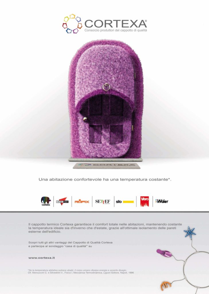 Il concept creativo Cortexa 2014 “Tu che cappotto hai?” era finalizzato ad evidenziare la differenza che corre tra un Sistema a Cappotto di qualità, come quelli Cortexa, e sistemi di Isolamento Termico a Cappotto “qualunque”.